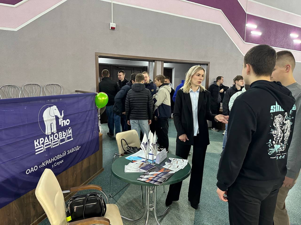 23-24 апреля на базе Молодежного центра проходила ярмарка вакансий. Мероприятие организовано с целью привлечения новых сотрудников, а одним из участников был ОАО «Крановый завод». Это возможность подойти и лично познакомиться с представителями завода, узнать о вакансиях и условиях работы. Также для учащихся 9-11 классов предлагали целевую подготовку в Белорусско-Российском университете, Белорусском национальном техническом университете по следующим специальностям: инженер-конструктор, инженер-технолог, инженер-электрик. Это вариант, который гарантирует абитуриенту бесплатную учебу в вузе (при условии поступления) и рабочее место по специальности после окончания университета.